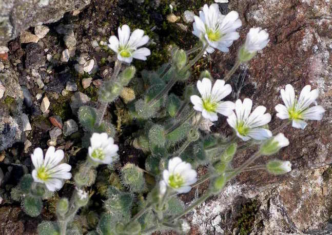 Cerastium alpinum ssp. lanatum, ein bescheidener Felsbesiedler.
