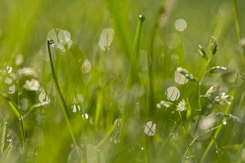 Dies ist zwar auch ein Tropfen, aber kein Regen, er soll auf einen herrlich sonnig-warmen Tag einstimmen, aber -shocking - der englische Rasen blüht