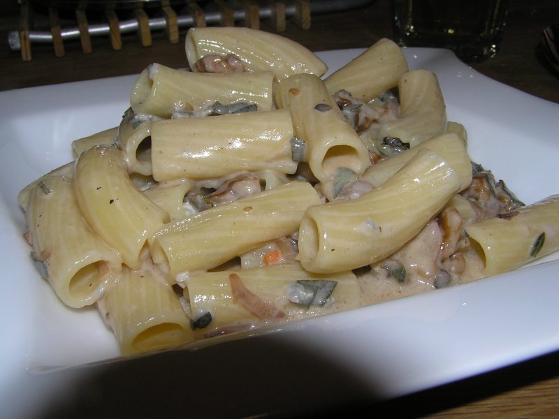 wir hatten gerade rigatoni in einer gorgonzolasoße mit walnüssen und salbei.lecker!dazu ne große schüssel salat mit croutons.