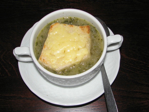 ich war heute nochmal auswaerts essen. es gab zwiebelsuppe....