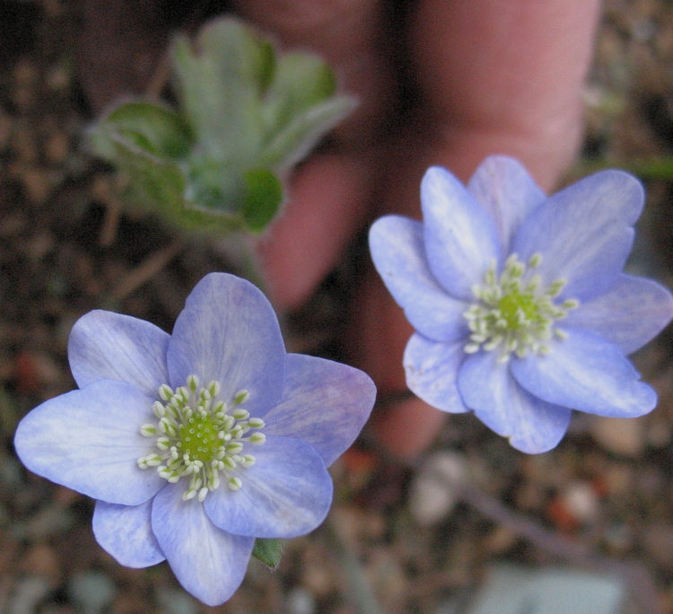 Erst das weisse gefüllte, jetzt diese Pflanze. Bei der könnte ich schwach werden. Schaun wir mal.Eine Hybride zwischen einem Japanischen und einem europäischen Hepatica ist Max Leichtlin mir zart marmorierter blau-weißer Blüte.