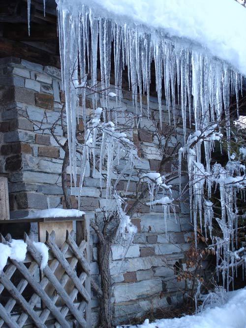 Ein armer Marillenbaum hinter dem Eisvorhang.