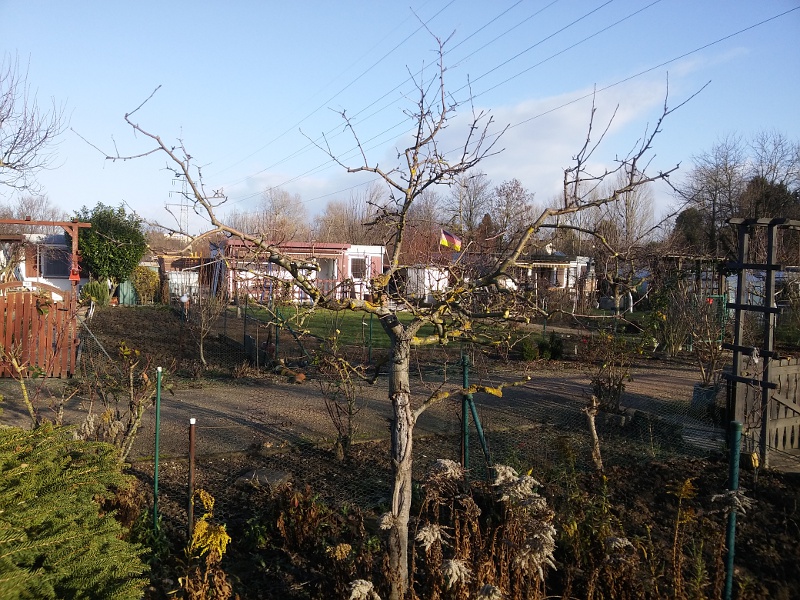 Den Jonagold vom Nachbar hast du wirklich toll hinbekommen. Er scheint auch zufrieden zu sein (man erkennt zumindest keine "Verbesserungsversuche" vom Eigentümer). Ich schneide unter anderem Bäume von der Stadt, die in einer Grünanlage stehen. Da passt nahezu keiner in die "Öschbergschablone" (wurden lange falsch/gar nicht geschnitten). Da gehe ich eher nach dem Motto "Der Weg ist das Ziel" vor. Steile Leitäste, Spindelmitte - Ja! Jeder Leitast drei begleitende Fruchtäste, Augenblenden, runter binden, etc. - Nein, dauert zu lange :-) Und trotzdem sind die Bäume besser in Schuss, als viele in den dahinter liegenden Gärten.