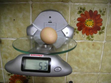 Das Vergleichsei ist etwas schwerer, obwohl die meisten unserer Eier auch relativ klein sind. Und die Bilder sind unscharf, muß mal noch bessere machen.