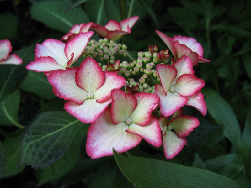 Und ein Nachtrag aus dem Juni: Meine beiden H. serrata im Kübel haben beide den Winter gut überstanden. Inzwischen sind sie natürlich verblüht, aber ein Foto der 'Tiara' zeige ich euch noch.Die H. macrophylla 'Kardinal' hat genau eine Blütendolde, wenn ich heute richtig nachgeschaut habe, ebenso eine Baumarkt-macrophylla. Sind halt Sensibelchen.LG Dicentra