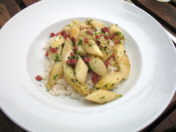 Warum? Das gibt doch keinen Geschmack. Oder welchen Grund hat das?Ich mariniere ihn immer, weil ich ihn sonst eher geschmacklos finde. Das finde ich in manchen asiatischen Restaurants echt schlapp. Die bieten etwas mit Tofu an und schneiden dann einfach ein paar Würfel hinein. Einfach so pur. Das schmeckt nach nix!!! Die Konsistenz von Tofu finde ich allerdings echt Klasse, vor allem wenn man ihn brät oder oder backt und er außen so ein Häutchen kriegt.Hier gab es heute gebratenen Spargel auf Reis.... lege ich ihn über Nacht in Soja- oder Buttermilch ein.