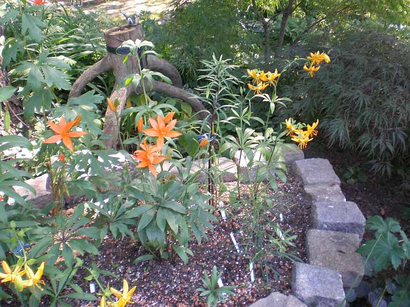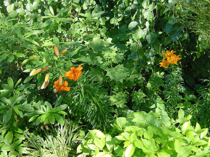heuer blüht erstmals eine samengezogene Lilium canadense var. coccineum, daher nur eine blüte. ob canadense in meinem sandigen humusboden jemals zu stattlicher größe mit zahlreichen blüten heranwachsen kann, wird sich zeigen. ich fürchte eher nicht + kann froh sein, wenn sie mal mehr als eine blüte produzieren. eine gekaufte canadense var. coccineum produziert immerhin schon mal 2 blüten, ist aber noch nicht aufgeblüht. canadense bevorzugt schweren lehmboden. zumindest hatte ich mal eine in meinem früheren garten in schweren lehm stehen + die war sehr groß mit vielen blüten. canadense ist ohne zweifel eine der elegantesten wildlilien.