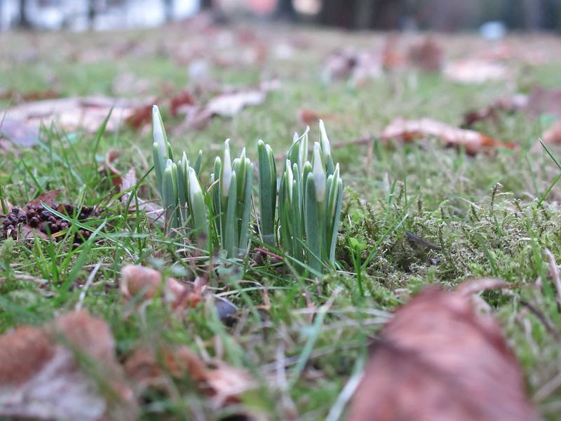 Im Park stehen mindestens 100 verschiedene Herkünfte von Galanthus. Die allerallerzeitigsten zeigen sich.
