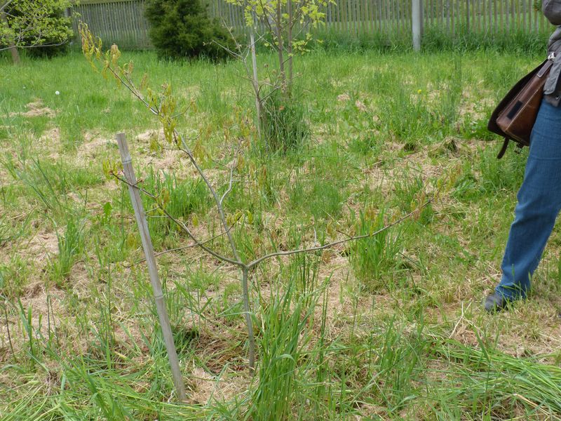 Cornus florida ist immer noch schwer zu erkennen auf dem Foto, hat aber auch zugelegt und wurde von uns - wie alle anderen Bäumchen auch - vom Grasbewuchs befreit.
