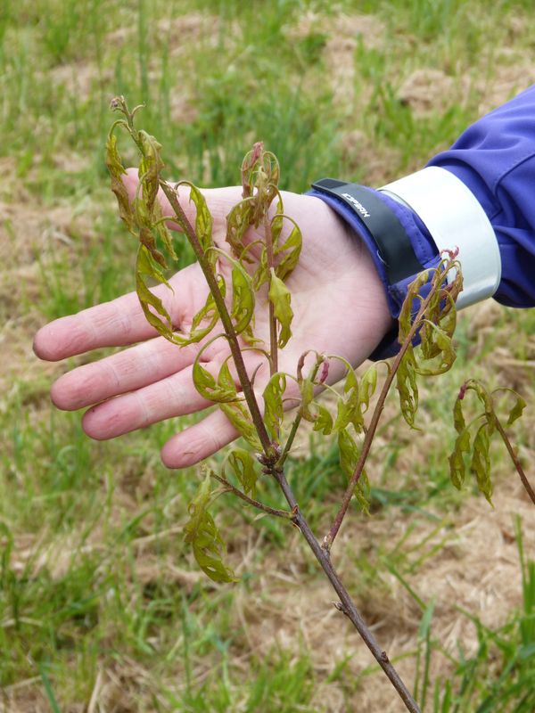 Ich fange dann hier einfach mal an - haben wir doch nach dem Gärtnereibesuch in Dresden einen Abstecher zu den pur-Bäumen gemacht. Wir haben alle gefunden, sie sind ganz offensichtlich angewachsen und haben überwiegend schon gut zugelegt. Aesculus pavia blüht dieses Jahr schon!
