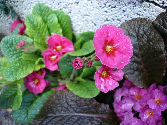 Obwohl es heute dauernd geschauert hat, habe ich noch ein paar Fotos von meinen Primeln gemacht, die ich in der letzten Zeit gekauft habe und die nun aufs Eingepflanztwerden warten (??weiß man ja nicht so genau??). Allerdings sind sie nun auf den Bildern klitschnass, den Samteffekt müsst Ihr Euch dazudenken.Es sind eigentlich von der Gärtnerei so genannte Staudenprimeln, also "ganz normale" polyanthus (wie die Briten wohl sagen würden); aber ich finde sie farblich einfach Spitze. Sie ähneln, wenn ihnen das gelbe Auge fehlt, z.T. den Cowichan von Barnhaven, aber die haben meist kleinere Blüten (was ja auch sehr hübsch ist, ich habe welche selbst gezogen, aber die blühen noch nicht).Hier erstmal eine blaue: