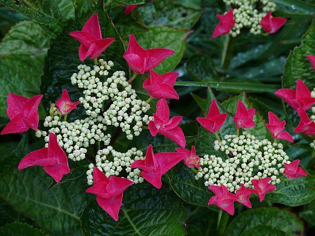 Nur bei den Hortensien, an denen ein Etikett 'Teller rot' hängt kann ich nicht weiter helfen. Es ist mit Sicherheit auch einer der "roten Vögel" aus der Schweizer TELLER-SERIE, 'Rotschwanz', 'Rotdrossel', 'Kardinal'... ???Vielleicht hat ja jemand eine Idee, bei der eigentlich recht markanten Form der Randblüten.