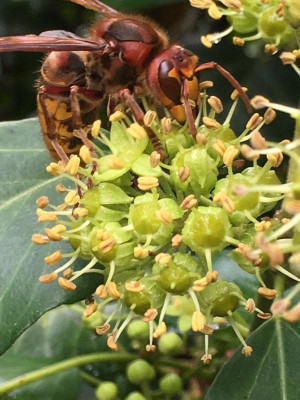 Ich beobachte im Herbst am blühenden Efeu Hornissen
