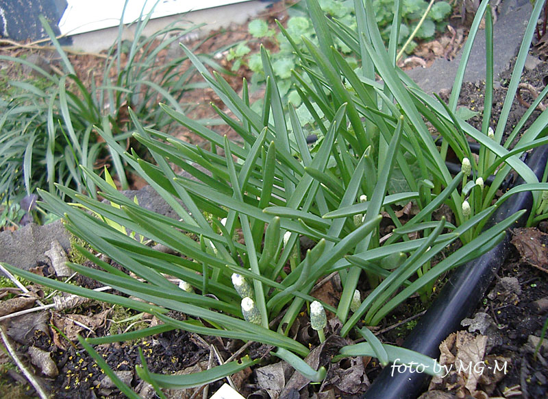 Ich habe heute das sehr angenehme Laub von Muscari 'Siberian Tiger' zur Anschauung fotografiert. Es treibt spät aus und lümmelt sich nicht so lang herum :) . Kleine Halme gibt es in der näheren Umgebung. Demnach hat es für Kinder gesorgt.