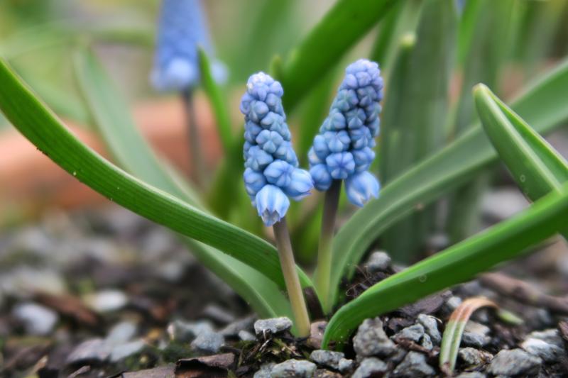 Hier und da, vereinzelt, tauchen jetzt diese Muscari auf, Muscari azureum vermutlich: