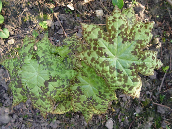 Das sieht doch ziemlich eindeutig nach Podophyllum 'Spotty Dotty' aus.Übrigens sah meiner letztes Jahr noch so aus:In meinem auch?In Deinem Fall: Podophyllum hexandrum.