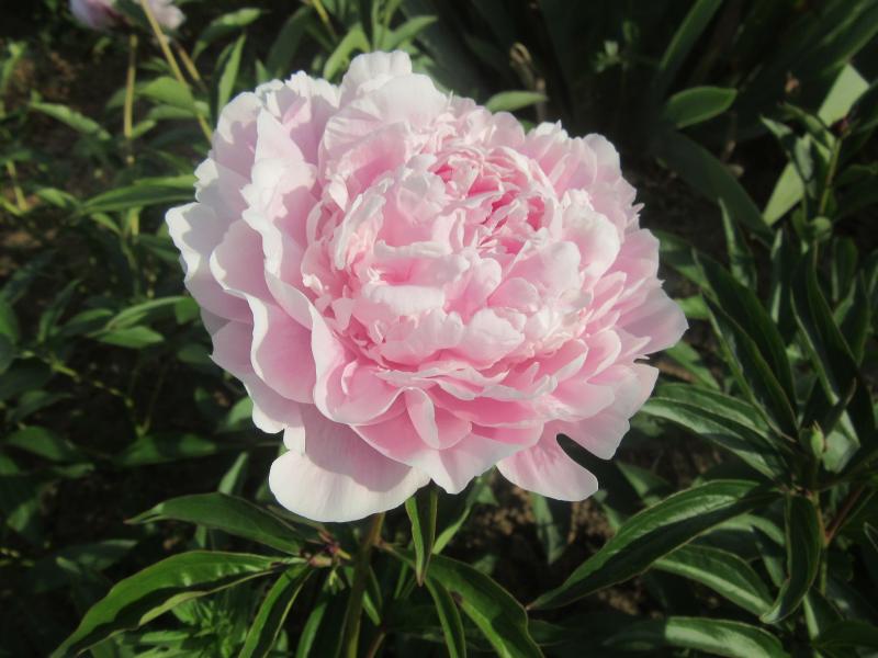 Nebenblüte von `Cardinal Robe´, diese Hybride hat netterweise genug Lactiflora-Blut abbekommen, um sich zu verzweigen. Die Hauptblüten waren angerfrostet und dadurch unnatürlich, entweder übelblaurosa oder weißlich.