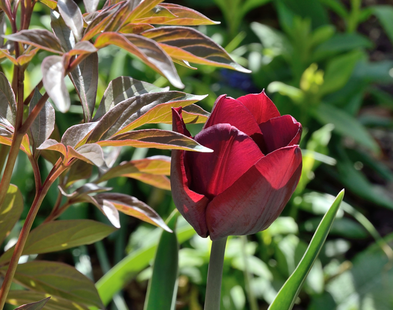 Ich liebe die Kombination von Paeonienlaub und Tulpen!