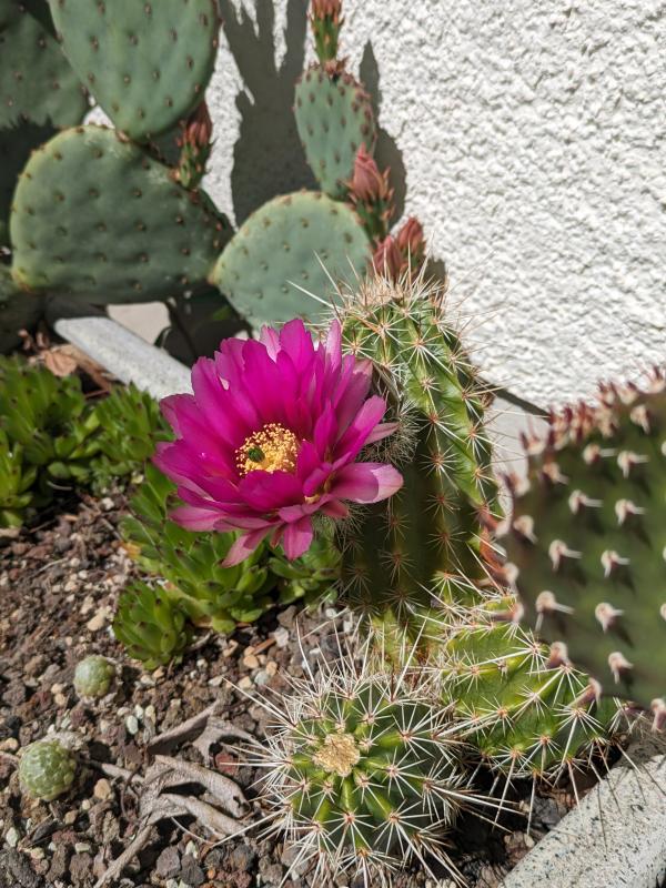 Weniger wehrhaft: Echinocereus, da gibt etliche Arten und Sorten.