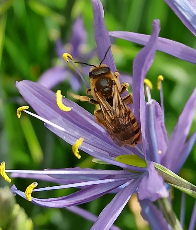 Andrena nitida (?) war ganz begeistert von die Camassiastielen...warum auch immer.