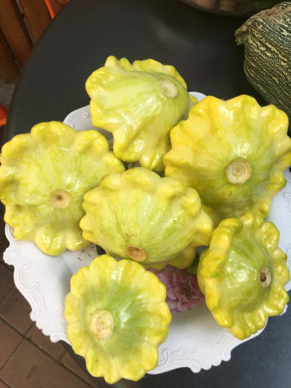 Gestern habe ich gelbe junge patisson für das grillen geerntet, die sind geschmacklich ein Traum