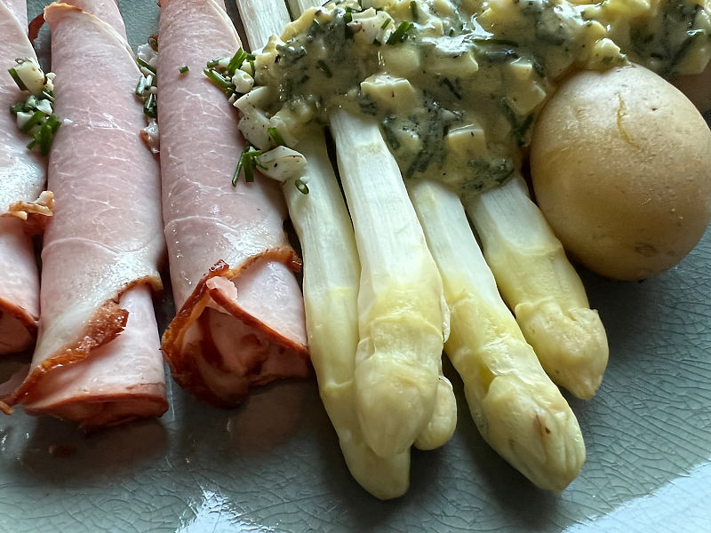 Spargel mit Bozener Sauce, Kartoffeln, Krustenschinken. :P