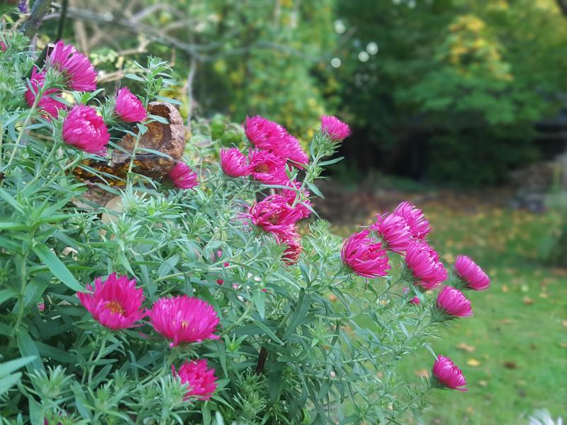 Gelenkblumen blühen immer noch, im Hintergrund Aster ageratoides.
