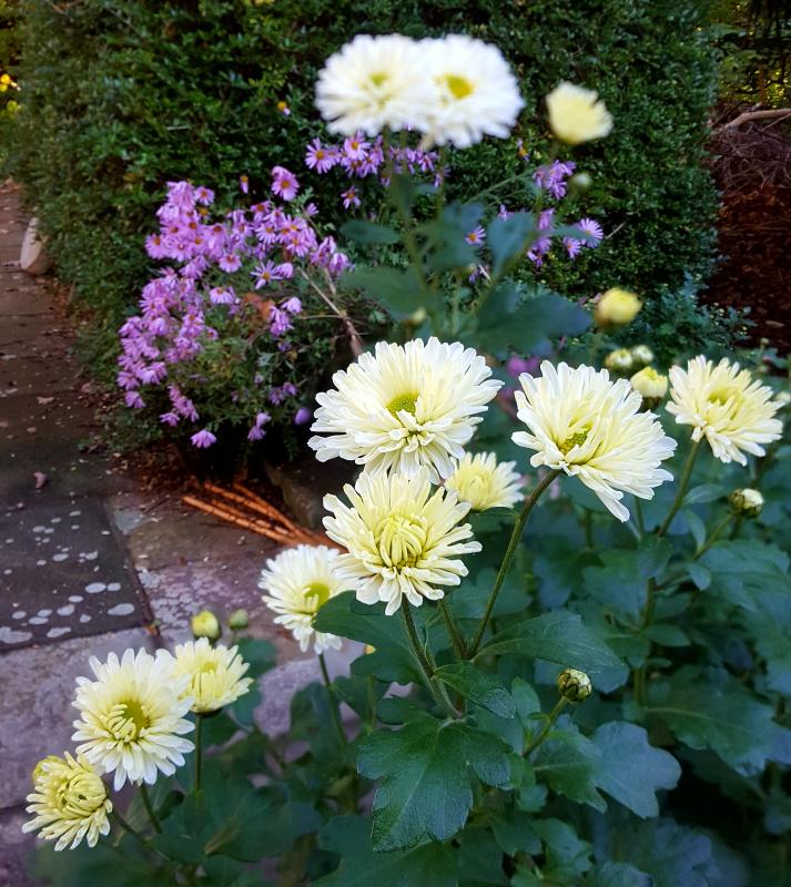Zwei Chrysanthemen : " Poesie " kommt, " Clara Curtis " geht