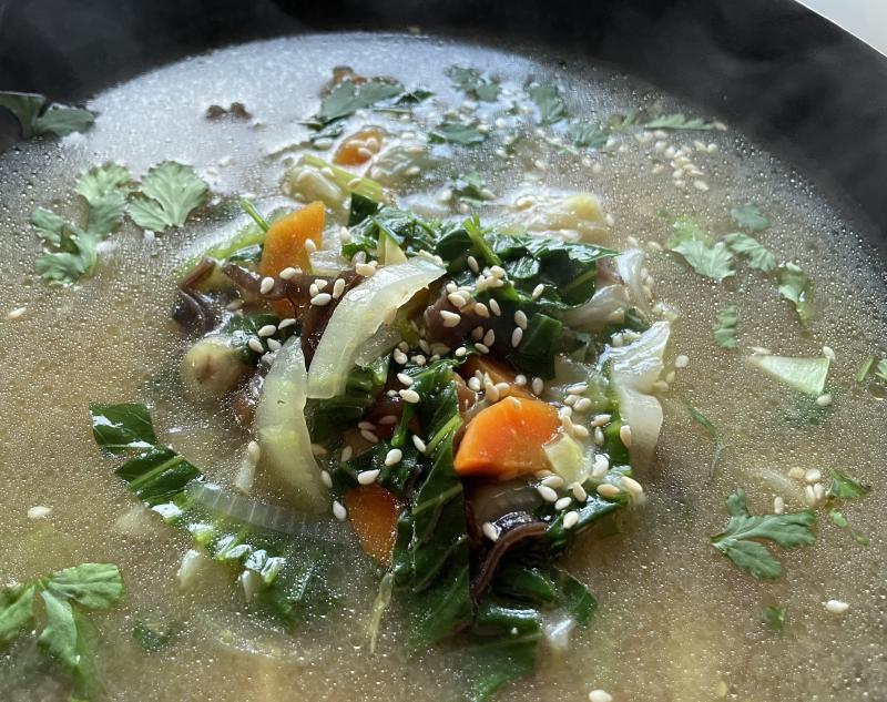 Bei uns gab es gestern Miso Suppe kombiniert mit Gemüsefach aufräumen. Da ich das schon morgens angekündigt habe, hat Thomas mittags irgendwo einen Hamburger gegessen. ;D auch wenn es nicht so sonderlich attraktiv aussieht. Es hat ihm am Abend dann doch geschmeckt. ;)