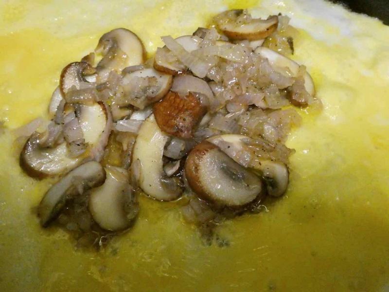 Weil es heute schnell gehen musste, ein Champignon-Omelett mit Schalotten: