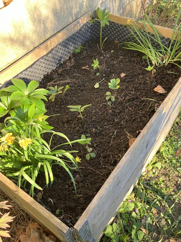 Ich habe blühfähige Lenzrosen aus dem kleinen Hochbeet in den Garten entlassen. Jetzt ist es wieder Kinderstube. Auf ein Neues!