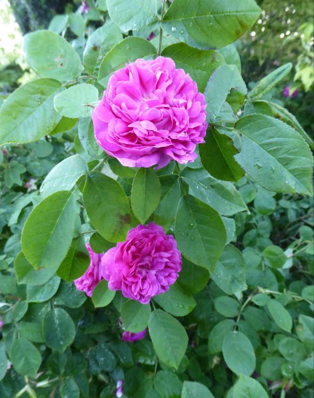 Rose de Resht und Amadis gehören zu den wenigen Rosen, die hier jetzt schon mehr Gas geben.