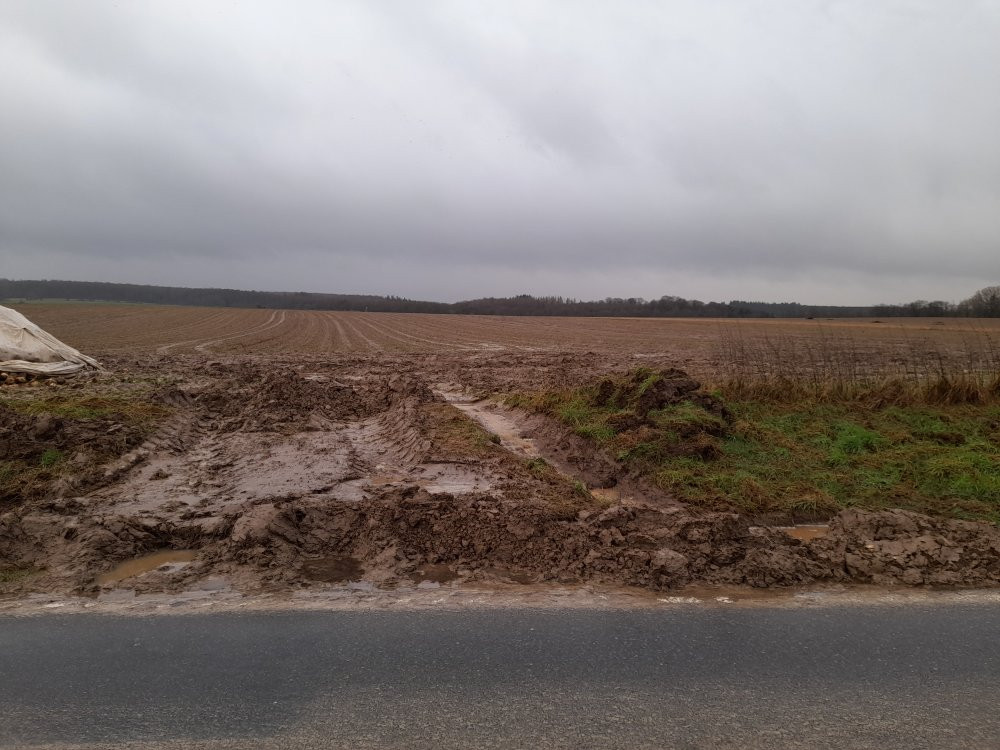 Bei dem Regen-ihr ahnt es schon- begiebt sich aber auch der bewusste Acker wieder auf Reisen. Damm fand man doof. Da hat man eine Erdburg mit Abfluss gebaut. Folge: Die Soße läuft wieder in den Graben, der mittlerweile auch fast zu sedimentiert ist. Am Ende läuft die Soße wieder erfolgreich in die FFH Gebiets Ilme. Glückwunsch. Wer baggert den Graben aus?! Wieder die Stadt Dassel? Wer zahlt... ach alles egal. Ich zitiere den Aufkleber eines Treckerd: Landwirtschaft darf alles.