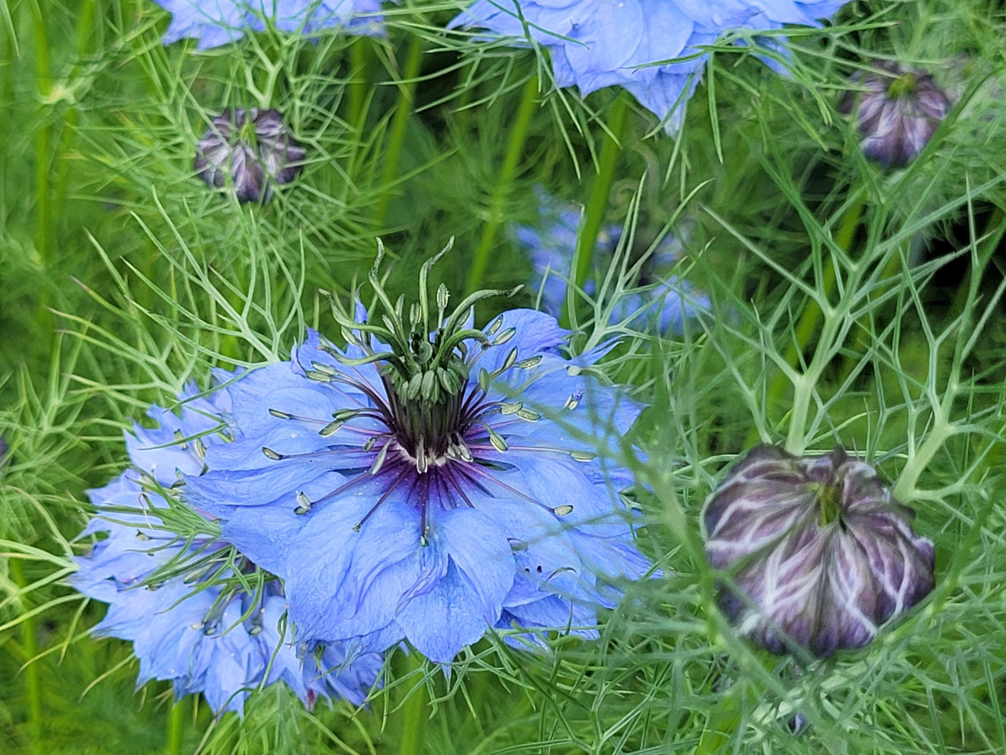 Ach und wunderschön blüht jetzt die zarte 'Jungfer im Grünen'- also Nigella. Ich mag diesen kleinen 'Blackboxer' richtig gern.