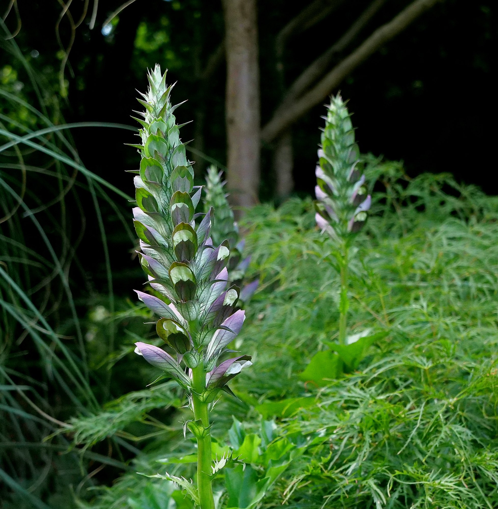 Hier blühen Acanthus, Hemerocallis und diese Campanula