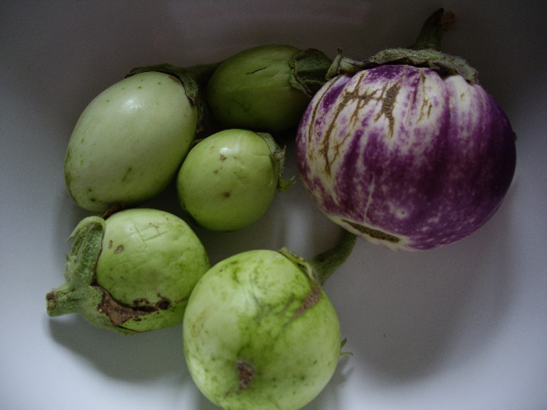 Eine wunderschöne Rosa Bianca und fünf Applegreen habe ich geerntet. Nur haben Auberginen Stacheln habe ich gemerkt-autsch!