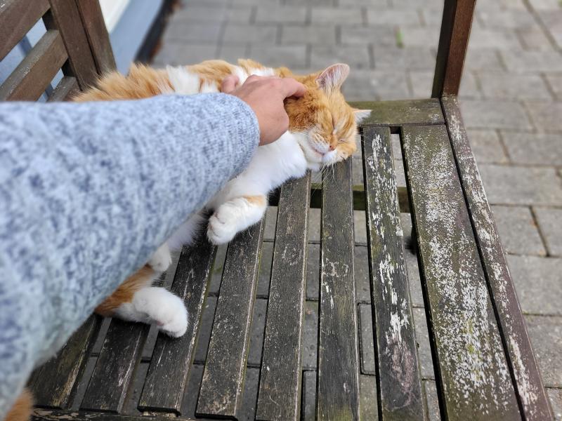 Begleiteter Entschädigungsspaziergang bei 60kmh Böen mit sturm-rolliger Miez :P :o, zum Glück gibt es genug Gartenstühle für ein Päuschen zum Runterfahren.