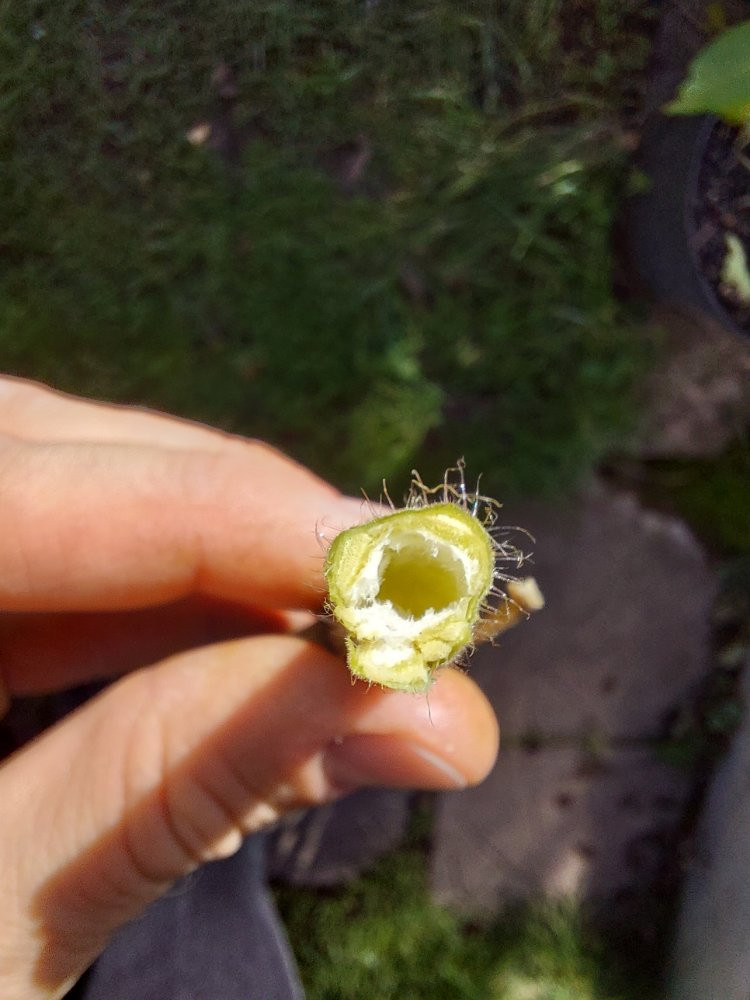 "Fruchtfleisch fauligweich": meine befallenen Früchte fühlen sich im Schadbereich eher verhärtet an.