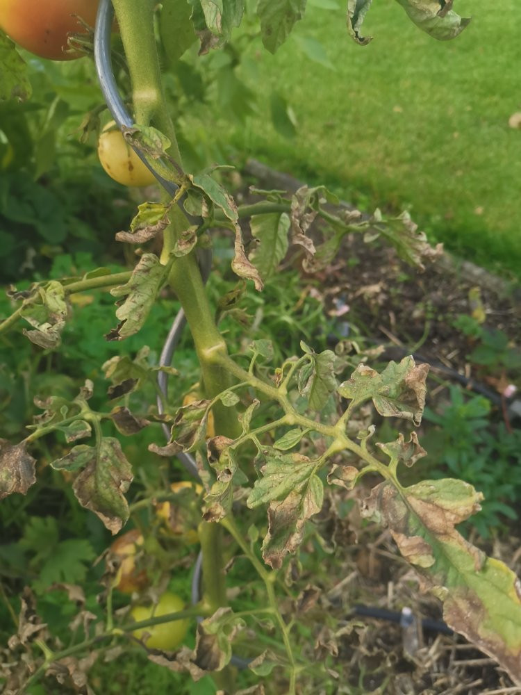 Ich meine da auch etwas Braunfäule zu sehen. Alternaria bestimmt auch. Und noch mehr. Da gibts keinerlei Rechtfertigung, egal wie man sichs schönredet, solches Material im Beet stehen zu haben, es bringt einfach keinen Nutzen mehr.