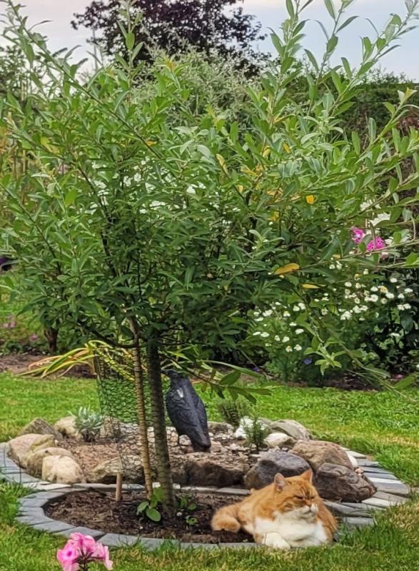 Gestern bei der Hitze lag sie scheinbar doch arg kränkelnd den halben Tag im Tiefschlaf im Rosengebüsch,so dass der Mann sie mal 5 Minuten ganz aus den Augen ließ.