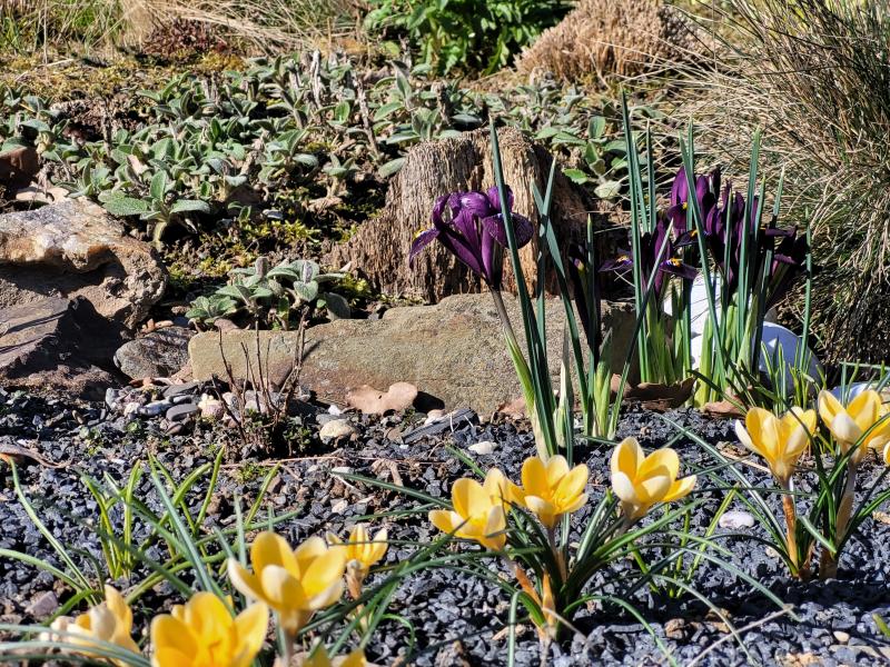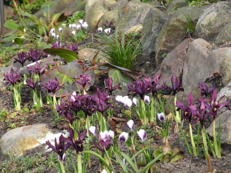 Zu meiner Ehrenrettung sei hier gezeigt, daß meine Iris reticulata 'Purple Hill' nun auch nicht mehr ganz so alleine herum steht. Nun sind es immerhin schon 7 bis 9 Blüten. Auch an anderer Stelle noch. Es wird aber wohl noch Jahre dauern.... seuuuffzzz.. :P