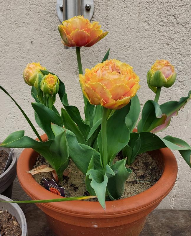 Ich bin nicht begeistert von Tulpen in Kübeln. Aus Platzmangel habe ich jeweils 5 Tulpen der gleichen Sorte im Garten und 5 im Kübel. Die im Kübel sind mickriger, unregelmässig gewachsen. Die Ice Cream geht überhaupt nicht im Kübel.