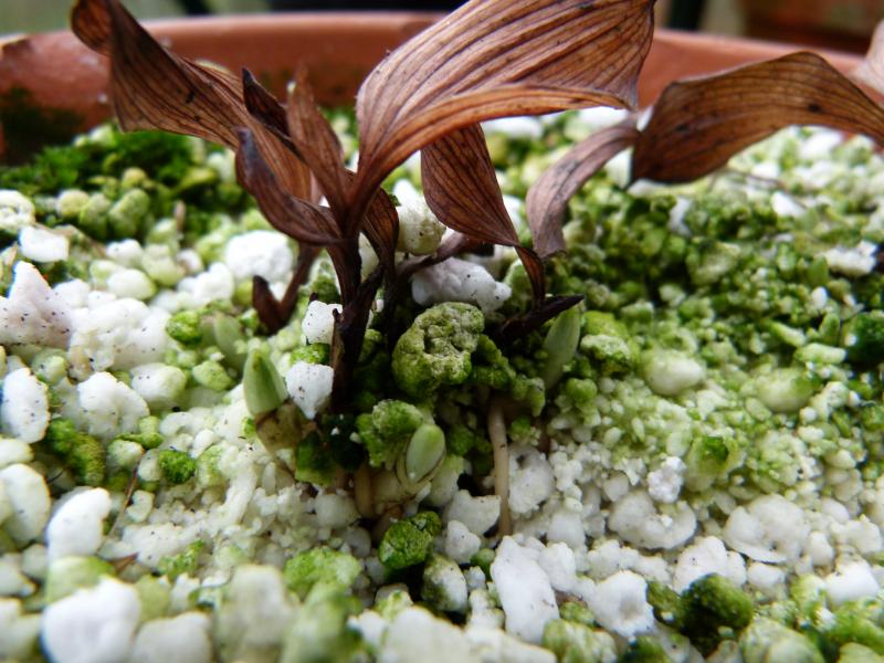 Ich habe heute bei den Cypripedium-Sämlingen mal etwas Substrat beiseite gekratzt. Das sind die kleinen Glücksmomente: jedes kleine Blattpaar hat zwei kräftige neue Knospen für den Austrieb im nächsten Frühling angelegt. Sehr schön!