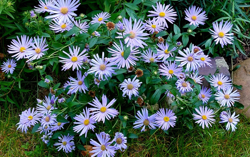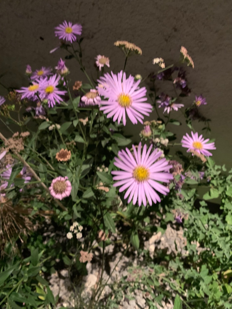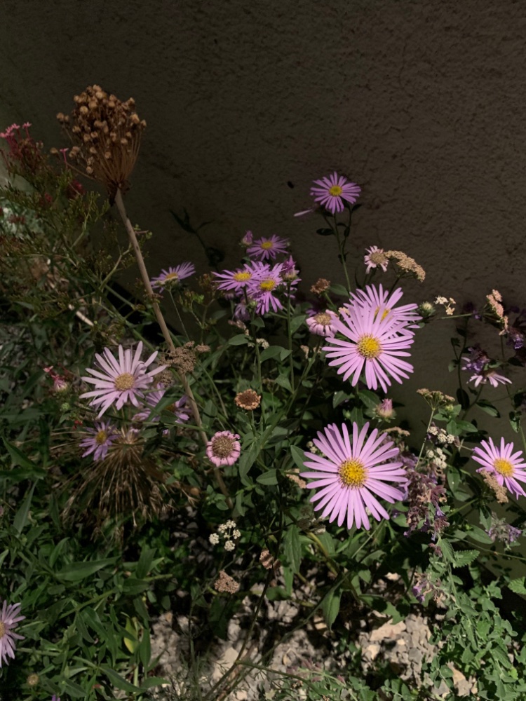 Aster amellus ist hier verschwunden. Veilchenkönigin hatte eine schöne Farbe, jedoch zartes Pflänzchen und nun ich sie weg. Ich werde sie nicht mehr pflanzen. Frikarts-Astern sind viel robuster und funktionieren besser für mich.