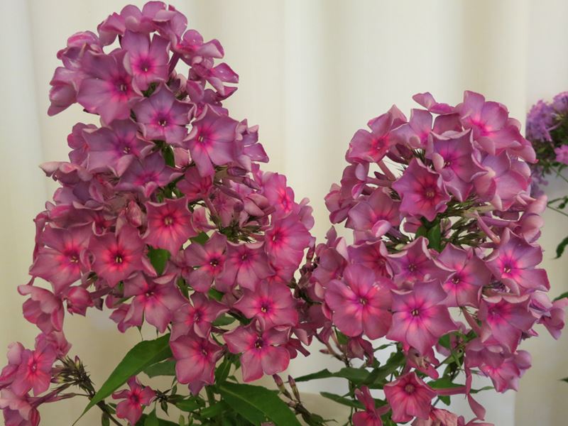 ;)Beschreibung auf der Seite der Enzyklopädie der Phloxe: Ø 4,2 cm; 85 cm; ungewöhnliches Rosa-rot mit Dunst (Ich danke den virtuellen Übersetzern.)