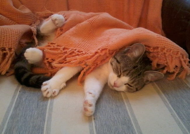 Orchidee, das ist aber eine hübsche Maus! Wie heißt sie denn?Kreiselchen war es heute wohl etwas kühl nach den Gewittern und der Hitze der letzten Tage. Sie hat sich eine Decke zum Schlafen gesucht.
