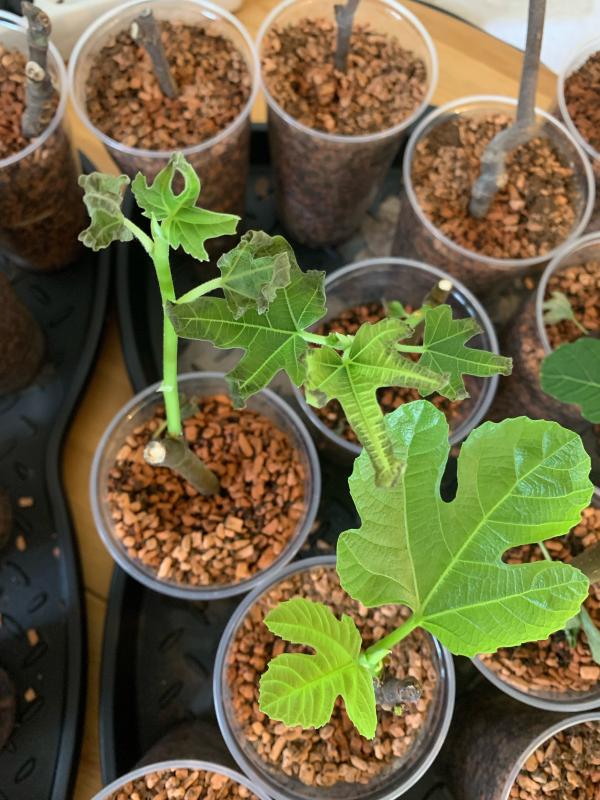 ich hab ein paar Feigenstecklinge von Bekannten bekommen. Mit der Bewurzelung klappt es recht gut. Ich habe allerdings ein Problem mit den neu gebildeten Blättern. Diese werden vom Rand her schwarz/grau (s. Bild) und gehen dann ein.