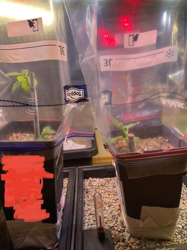 Unwichtige Teststecklinge in feuchter Küchenrolle über Heizkörper in Zipbag.