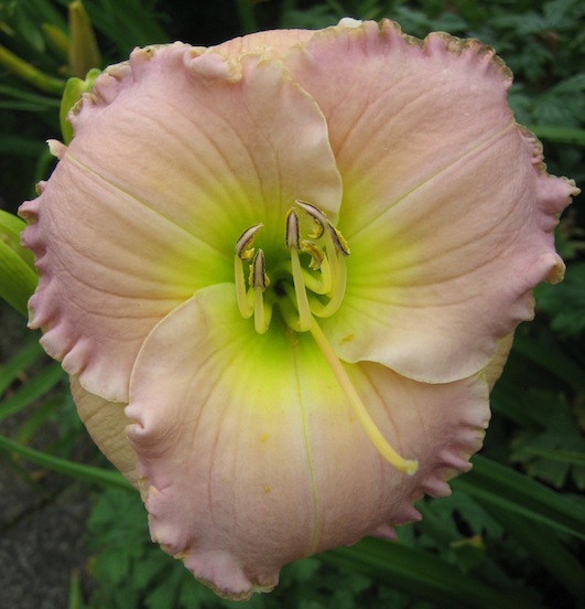 Ich würde schreibenBluish lavender bitone with big grass green throat turning to soft yellowSondern wie?2007 habe ich die Taglilie mit 'watermark' registrieren lassen. Damals war ich mir da auch nicht ganz sicher. Heute würde ich das wohl nicht mehr so machen.