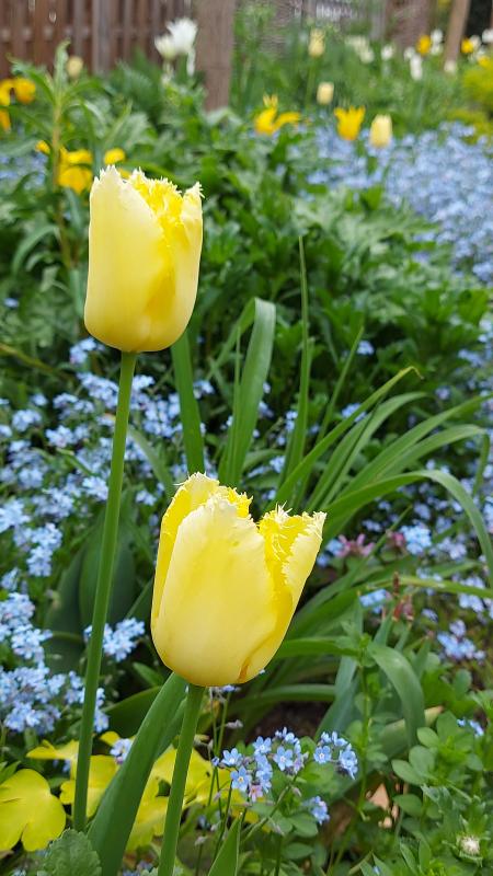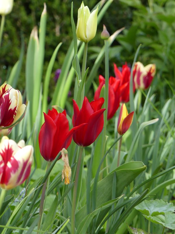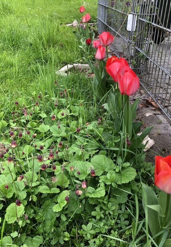Hier blühen nun die Tulpen in den zwei neu bepflanzten Beeten. Ich muss tatsächlich mal in den Rechnungen schauen, ob ich die so bestellt habe...